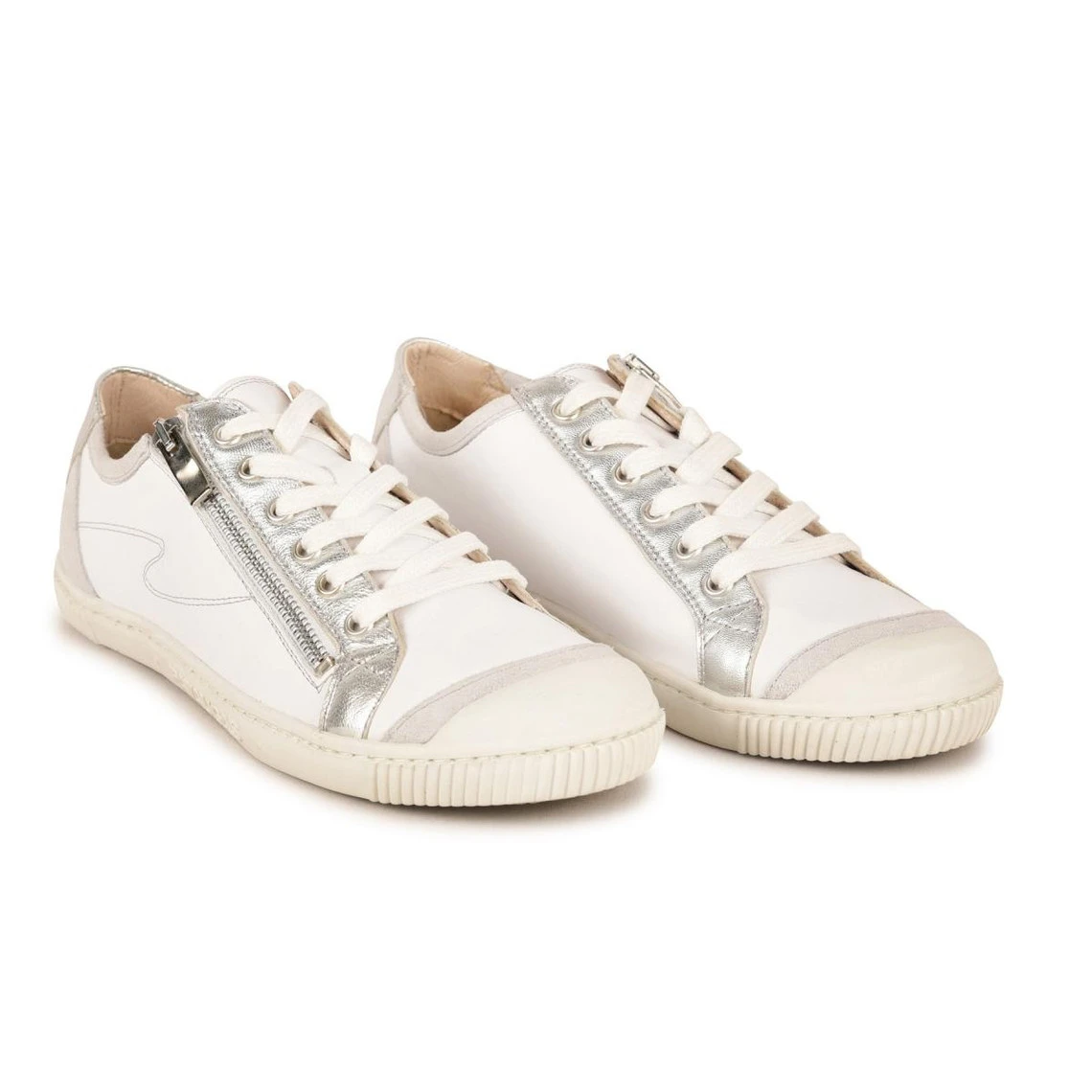 Portez cette paire de Baskets Basses Cuir Zippées Blanc/Argent Femme – BAHIA SUÈDE MÉTALLISÉ F2H pour un port quotidien très confortable. Elle propose une tige en cuir très chic à porter. Cette paire est munie d’un zip latéral et une fermeture à lacets très résistante.
