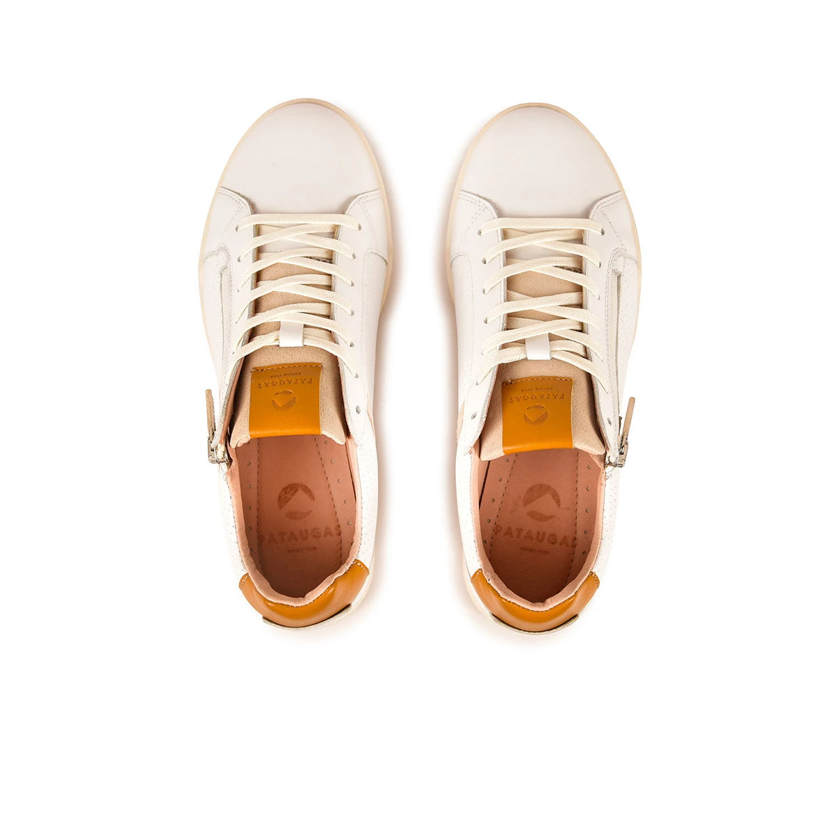 Retravaillée cette saison, la version Low de notre Palme! Celle-ci emprunte les codes du sport ambiance tennis avec son cuir blanc légèrement perforé et ses accents couleurs. Cette chaussure vous apportera du confort lors de vos marches quotidienne grâce à sa semelle en injecté ultra-souple. Son mix de cuirs est élégant et sa fermeture éclair est très pratique pour faciliter le chaussant.