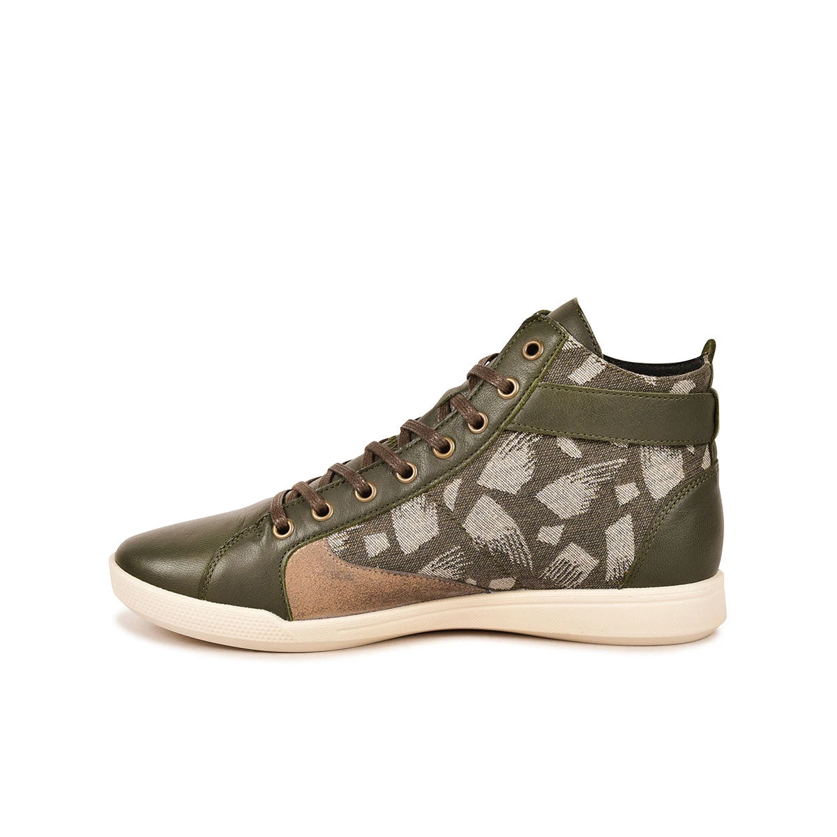 Dessus: 50% textile jacquard tissé à partir de fibres recyclées et fabriqué en France et 50% mix cuirs